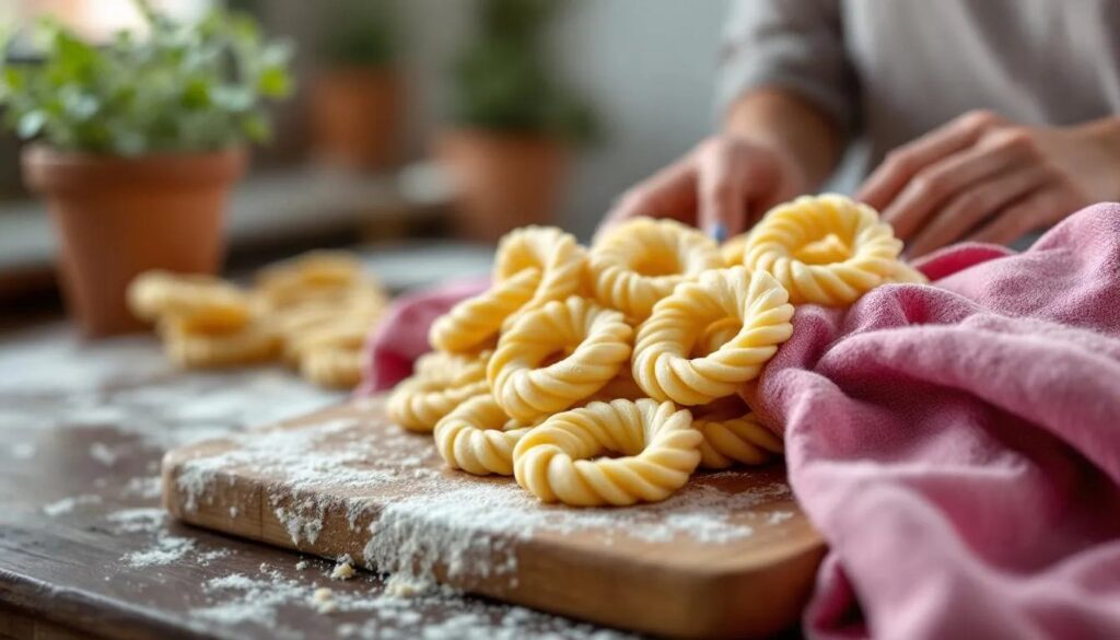 Sì, ed è persino consigliabile. I taralli napoletani migliorano il giorno dopo la cottura: la croccantezza si consolida ulteriormente e i profumi di pepe e strutto si integrano. Potete prepararli fino a 4–5 giorni prima di Pasqua e conservarli a temperatura ambiente in una scatola di latta o in un contenitore ermetico, lontani dall'umidità.