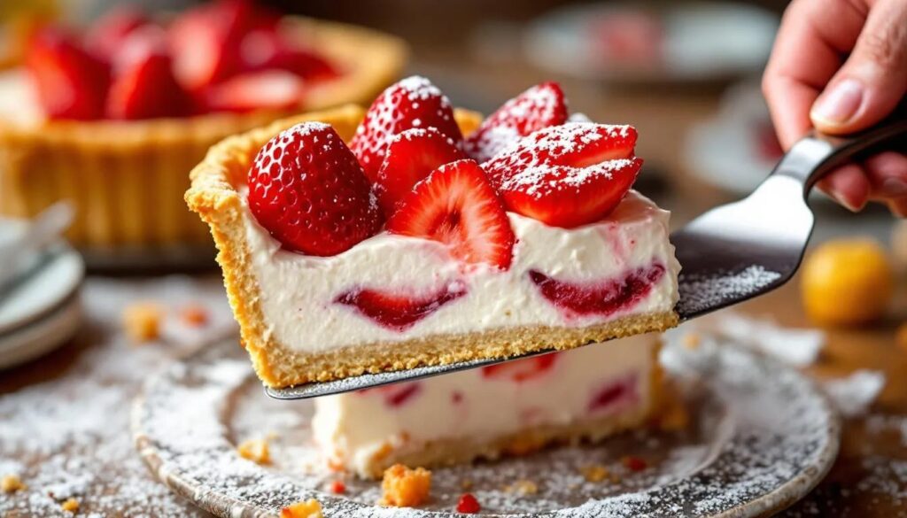 Questa torta di fragole e crema si assembla in 25 minuti, con ingredienti facili da reperire, senza attrezzature particolari e senza esperienza di pasticceria. La crema è una versione semplificata della pasticcera classica, addensata con amido e arricchita da una nota di vaniglia; le fragole di stagione si tagliano a fette e dispongono a piacere sulla superficie, dove brillano come una vetrina. Basta un frigorifero e qualche ora di riposo perché tutto si consolidi. Chi ha già un mattarello e una ciotola capiente ha tutto il necessario per iniziare.
